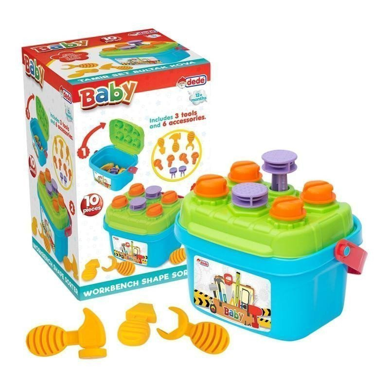 Vkládačka obsahuje sadu základních tvarů, které musí děti umístit do správných otvorů na víku kufříku. Díky vkládačce se děti mohou naučit rozpoznávat nové tvary a barvy. Výrobek povzbuzuje jemnou motoriku a koordinaci rukou a očí. Rozměr balení je 150x150x240
