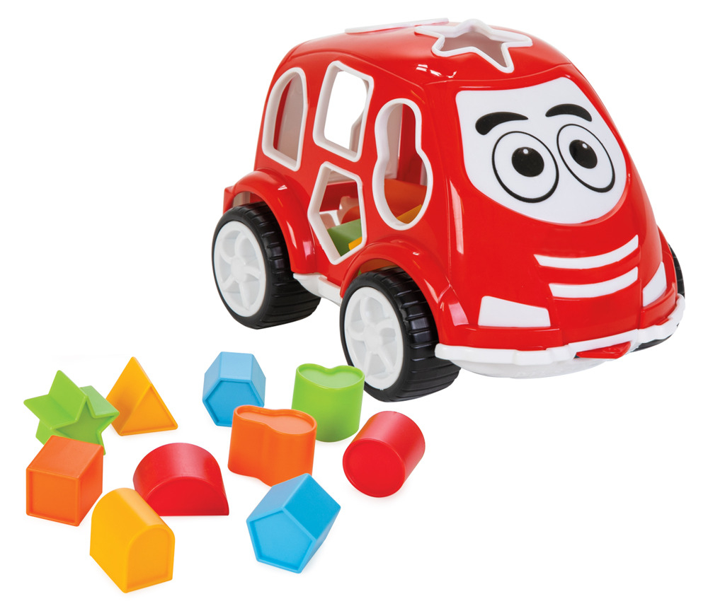 Vkládačka autíčko – učí děti jemnou motoriku, tvary a barvy. Elegantní a ergonomický design. Obsahuje 10 různých geomentrických tvarů. Splňuje nejpřístnější normy EU. Vyrobeno ze zdravotně nezávadného materiálu.