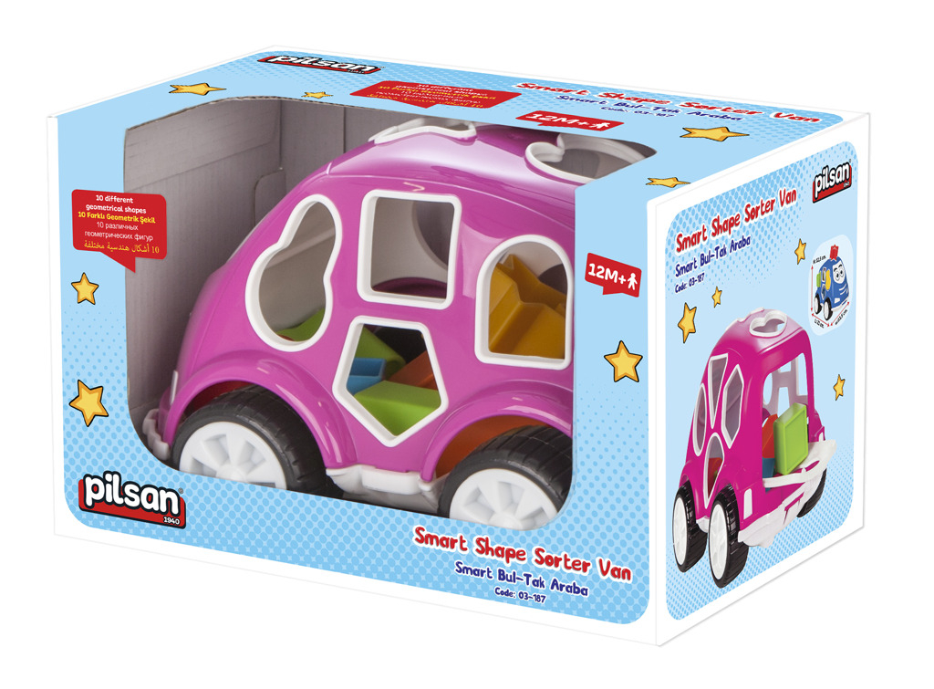 Vkládačka autíčko – učí děti jemnou motoriku, tvary a barvy. Elegantní a ergonomický design. Obsahuje 10 různých geomentrických tvarů. Splňuje nejpřístnější normy EU. Vyrobeno ze zdravotně nezávadného materiálu.