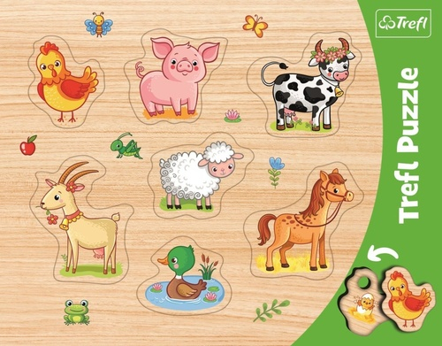Vkládačka pro nejmenší s motivem zvířátek ze statku. Dítě se podle obrysů a tvaru snaží najít správný obrázek (rozvoj představivosti a logického myšlení), a umístit jej do správného otvoru (rozvoj jemné motoriky). Vkládačka obsahuje sedm dílků bez úchytek s podkladovým obrázkem. Rozměr složeného puzzle cca 37 x 29 x 0,5 cm