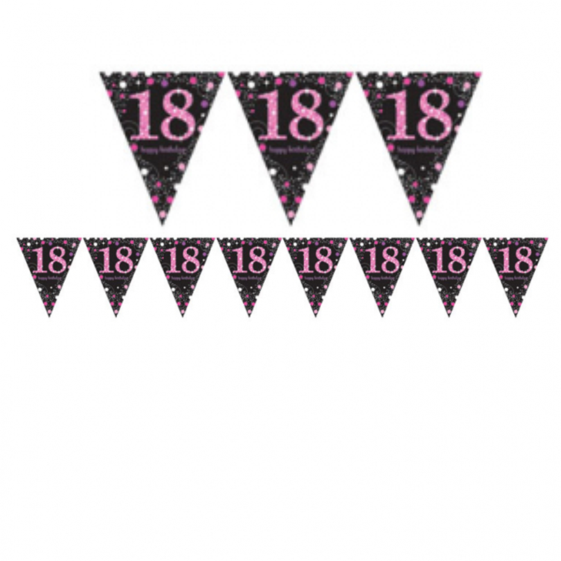 Vlajka 18. narozeniny pink 4 m 18-té narozeniny jsou důležitým mezníkem. Oslavou 18. narozenin se loučíme se svým dětstvím a slavíme začátek dospělosti. Proto se většinou právě osmnáctiny slaví ve velkém stylu. A protože chceme, abyste svoje osmnácté narozeniny mohli oslavit "jak se patří", připravili jsme pro Vás několik barevných variant. Kompletní nabídku párty dekorace k 18-tým narozeninám najdete v sekci Párty - narozeniny 18. Samozřejmě můžete tyto produkty doplnit o další dekorace v jednobarevných variantách. Balonky můžete nafouknout heliem.