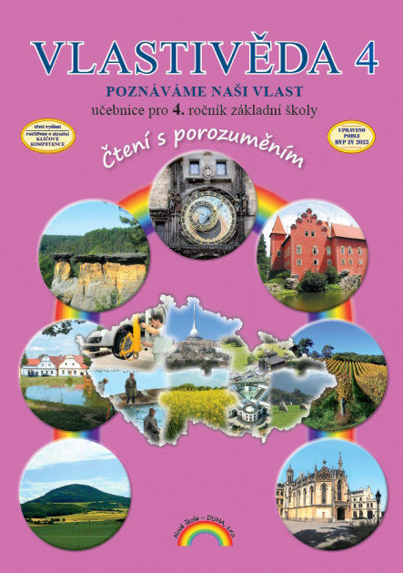 Tato učebnice vychází v rámci moderní řady učebnic z edice Čtení s porozuměním. Je upravena v souladu s RVP ZV 2023, je tedy doplněna zejména o téma Peníze a majetek. Obsahuje mezipředmětové vztahy, průřezová témata i skupinové úkoly. V textu jsou zařazeny poutavé ukázky z krásné literatury vztahující se k probíranému učivu. Doplněny jsou otázkami na podporu čtenářské gramotnosti. Učebnice je zpestřena dialogy dvou dětí – Vlasty a Vlastíka. Jejich rozhovory uvádějí nové učivo do souvislosti s každodenním životem. Milí žáci, vydejte se s námi na výlet po nejhezčích místech naší vlasti. Poznáte naši nejvyšší horu, nejdelší řeku, největší město. Dozvíte se například, kde se pěstuje réva vinná, kde se těží ropa a kde se vyrábí automobily. Naučíte se orientovat podle mapy. Získáte základní znalosti o hospodaření s penězi. A v neposlední řadě se dozvíte, jakým způsobem může každý z nás přispět k ochraně přírody. KLÍČ KE CVIČENÍM ke stažení zde.