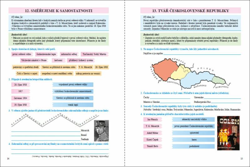 5-48 Barevný pracovní sešit je rovněž rozvržen do 15 částí a vhodně doplňuje učebnici. Zábavnou formou si zde žáci mohou procvičovat a upevňovat své znalosti. Součástí tohoto pracovního sešitu je nově i časová přímka (všita uprostřed sešitu).