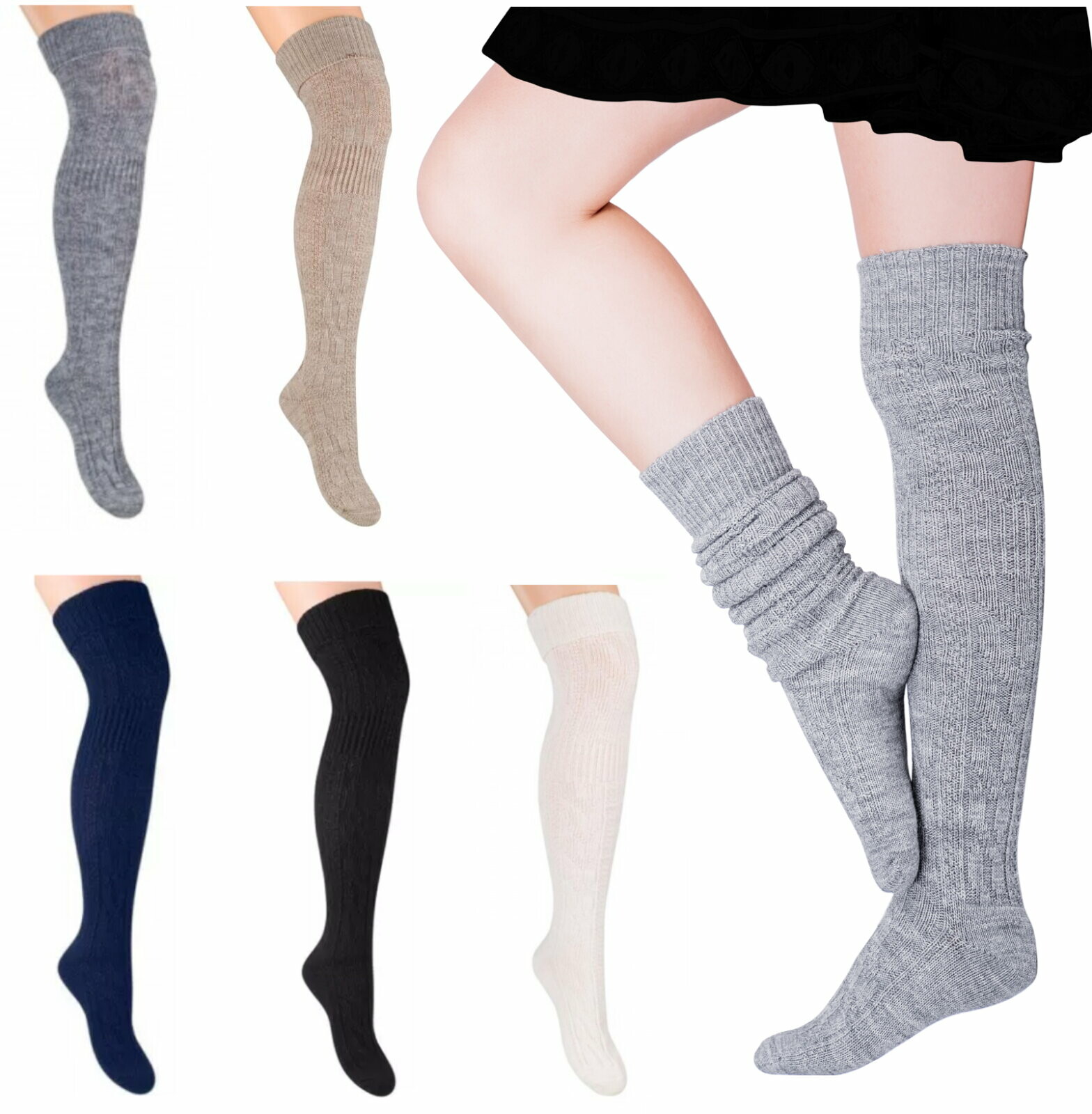 Domů Oblečení a móda Pánské oblečení Pánské ponožky Vlněné dámské nadkolenky 089 ECRU/WARNING 35-37