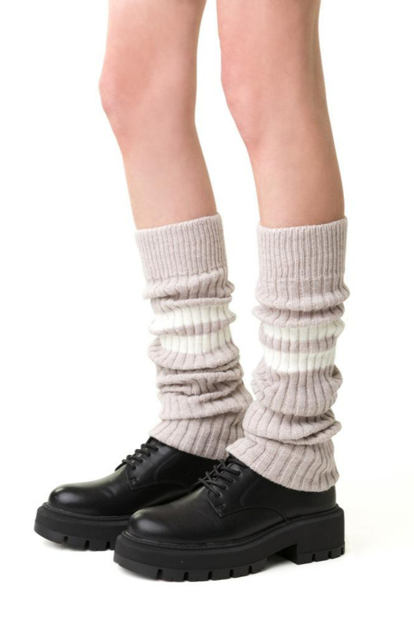 Vlněné návleky 068 BÉŽOVÁ/PRUHOVANÁ MELANŽ univerzální