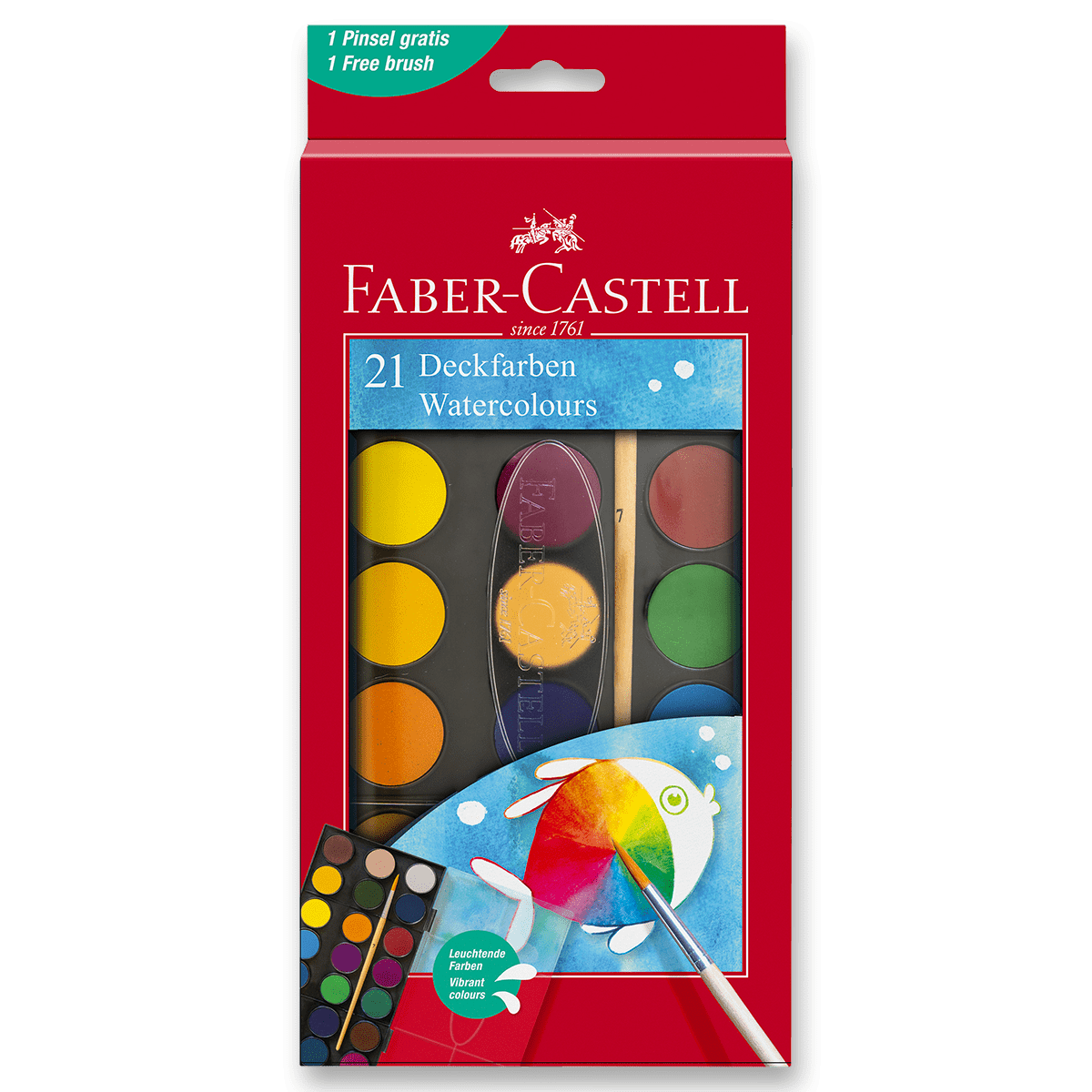 kvalitní vodové barvy v plastovém pouzdře vysoké krycí schopnosti zářivé a syté barvy plastový obal lze využít jako paletu součástí je i štěteček Tip: K vodovým barvám můžete potřebovat i papír, štětce nebo kelímky na vodu 21 barev, o 30 mm [otestováno]PODÍVEJTE SE, JAK TYTO VODOVKY DOPADLY V TESTU VODOVEK NA WWW.SKOLNISVET.CZ Zakupte produkt Vodové barvy Faber-Castell 21 barev, průměr 30 mm z kategorie Výtvarné potřeby | Barvy | Vodové bavy od výrobce Faber-Castell za cenu 199 Kč.