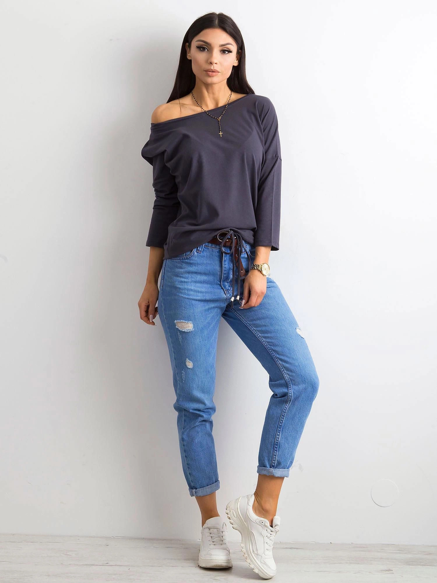 Domů Oblečení a móda Dámské oblečení Dámské halenky a košile Volná dámská halenka v grafitové barvě se zavazováním na spodním okraji (4691) odstíny šedé XL (42)