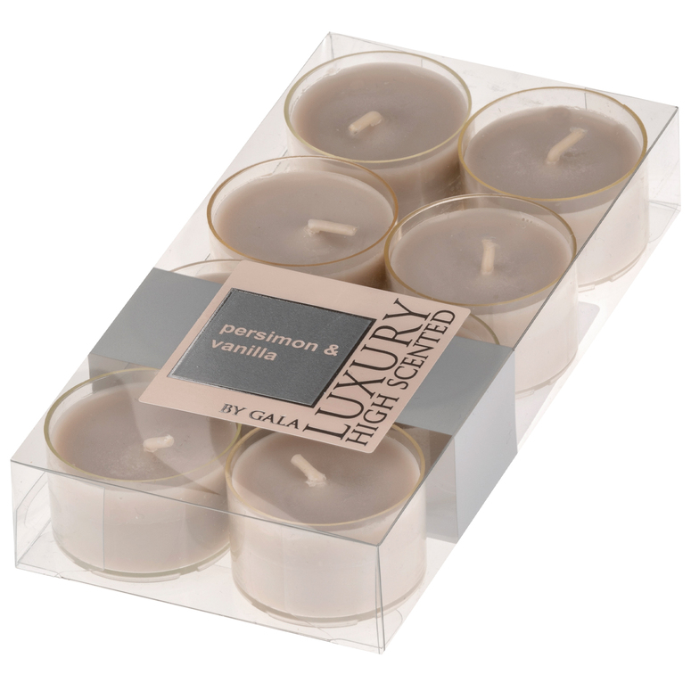 Vonné svíčky Persimon & Vanilla 8 ks Ušlechtilá kombinace vůní obsahující italské citrusy, ananas a broskev, je omamná a eletantní zároveň. Jemný nádech sladké vanilky a tonkových bobů zaobaluje svůj módní a útulný charakter. Charakter vůně: extravagantní. Hlava: zeleň, ovoce, ananas, citrus Srdce: červené ovoce, broskev, kokosový ořech Základ: sladký vanilkový krém, tonkové boby, heliotrop Vůně ze tří částí - hlava, srdce, základ. Hlava vůně je cítit jen několik minut - v této hlavě najdeme zeleň, ovoce, ananas a citrusy.Srdce nastupuje po pár minutách, přesněji po odeznění hlavy. Narozdíl od hlavy je vůně intenzivnější a je cítit déle (pár hodin). U této vůně se jedná o červené ovoce, broskev a kokosový ořech.Základ jde cítit nejdéle ze všech částí (několik hodin až dní) a jde cítit až jako poslední. V tomto základu je vůně sladkého vanilkového krému s tonkovými boby a heliotropem. V balení je 8 ks. Doba hoření cca 6 hodin. Průměr 40 mm / výška 25 mm. Kompletní nabídku svíček najdete na eshopu www.la-griseo.cz .