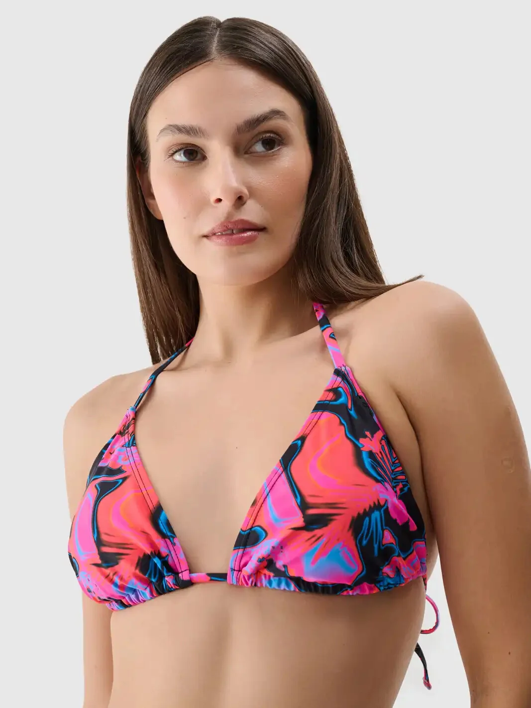 Horní díl plavek v odvážném a barevně výrazném designu, který dodává modelu moderní a energický vzhled. Klasický trojúhelníkový střih zajišťuje pohodlné nošení a skvělé přizpůsobení postavě. Díky nastavitelným šňůrkám za krkem a na zádech je možné individuálně upravit velikost pro maximální komfort. Ideální volbou pro ženy, které chtějí na pláži nebo u bazénu vyniknout.