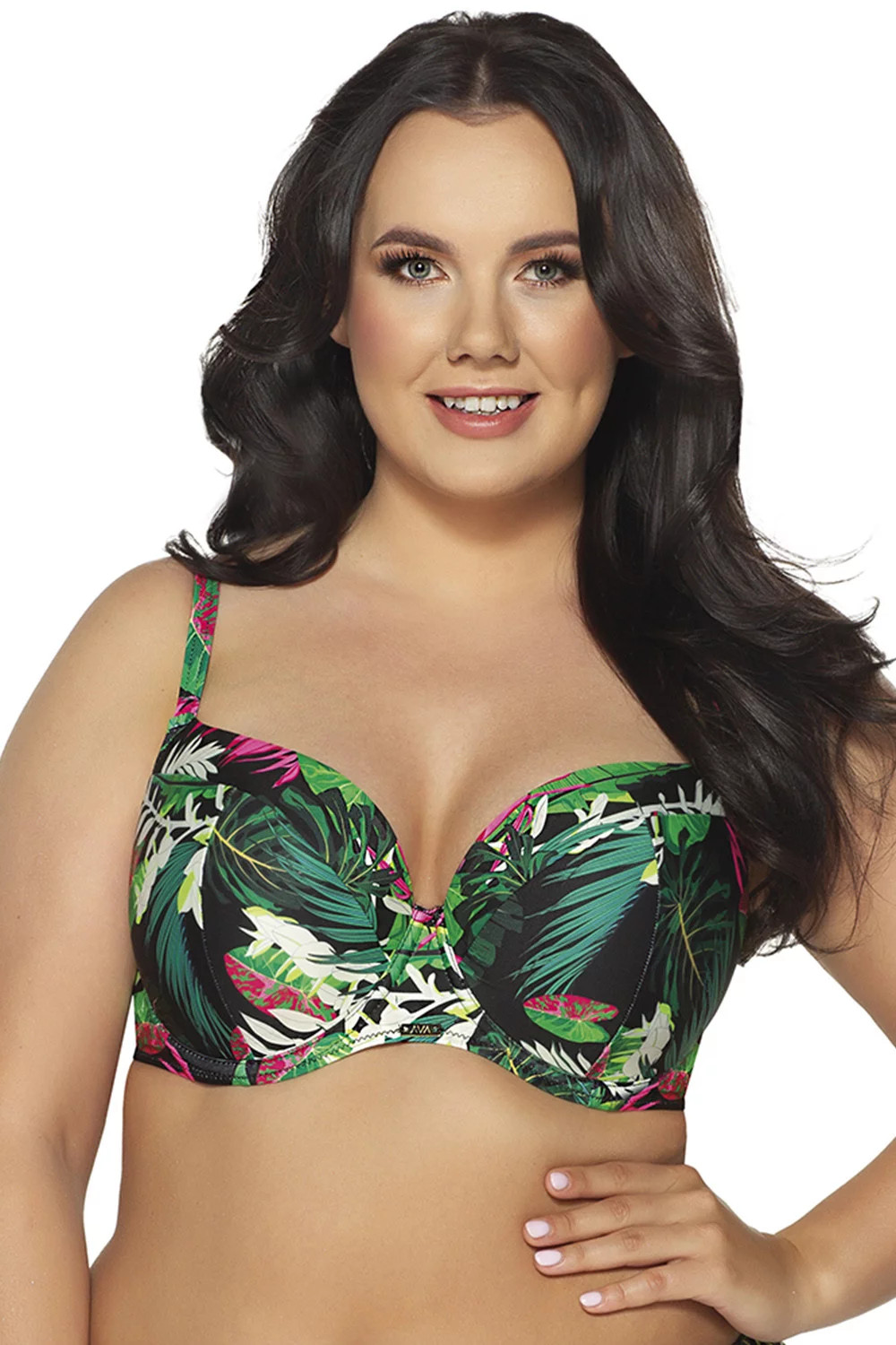 Dámský vrchní díl plavek od Avy. Model SK-201. Výrobek pro ženy. Podprsenka je vyztužená, s kosticemi. Ramínka nejsou odepínací, ale jsou posouvací. Zapínání na zádech na kovový klips. Materiálové složení: 80% Polyamid, 20% Elastan