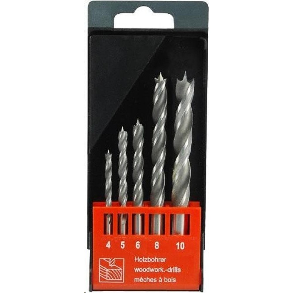 Vrtáky do dřeva, sada 5ks, 4-10mm, CrV 8801220 Vhodné pro vrtání v přírodním tvrdém i měkkém dřevu, tvrdých deskách, překližce i dřevotřísce. Šroubovitý vrták je určen pro vrtání s vysokým nárokem na přesnost děr menších průměrů a s malou hloubkou. Vhodný zejména k vrtání tuhého dřeva, dřevotřískových a dřevovláknitých desek. Hlavní přednosti dvojitá šroubovice zvyšuje vrtací výkon a životnost vrtáků .technické parametry: Ř4-10mm doplňující parametr: Ř4-5-6-8-10mm materiál:¨CrV