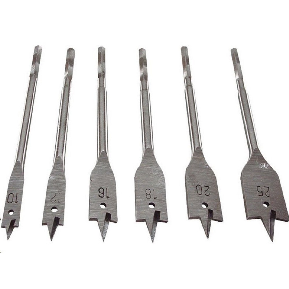 Vrtáky ploché do dřeva, sada 6ks, 10-25x150mm Charakteristika: Plochý vrták je vhodný pro rychlé vrtání do všech druhů měkkého i tvrdého dřeva. Hlavní technické parametry: Plochý vrták je vhodný pro rychlé vrtání do všech druhů měkkého i tvrdého dřeva.technické parametry:10-25x150mm průměry: 10-12-16-18-20-25mm, šestihranná stopka