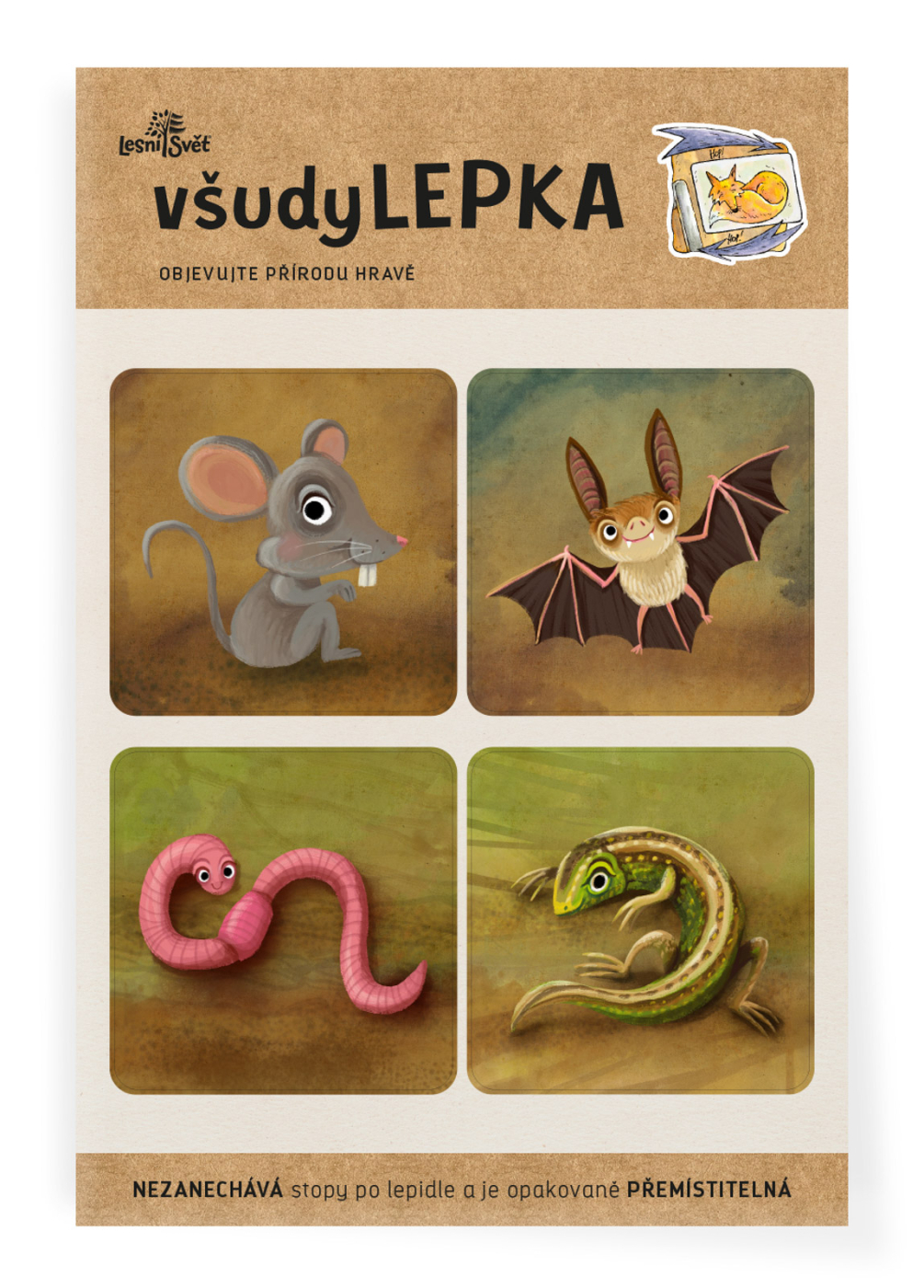 Lepí na stěnu, nábytek i sklo VšudyLEPKA nabízí nekonečné možnosti pro hru a učení doma, ve škole, nebo třeba v družině. Připravíte s ní zábavné hry, vzdělávací aktivity, nebo využijete jako pomocníka při tvoření. Také je oblíbenou dekorací do dětského pokoje. Nezanechává stopy po lepidle. Lze ji opakovaně přemisťovat z místa na místo. Pevná a odolná. Šetrná ke všem povrchům. VšudyLEPKY jsou také oblíbeným pomocníkem pro třídění a rozlišování ve školách, školkách, nebo doma mezi sourozenci. Obrázkem snadno označíte, komu patří skříňka, šuplík, nebo postýlka. A případně to také snadno změníte. VšudyLEPKA z Lesního světa Vzor všudyLEPKY: myš, netopýr, ještěrka, žížala Balení obsahuje arch s všudylepkami, rozměr archu: 24 × 16 cm Zabaleno v sáčku. Rozměr všudyLEPKY je cca 7 × 7 cm. VšudyLEPKY vyrábíme v Hradci Králové. Autorem kreseb jsou čeští ilustrátoři, obrázky jsou chráněny autorskými právy. Všechny výrobky jsou vyrobeny s ohledem na životní prostředí. Petita Kůsová, malířka a ilustrátorka Tvoří především dětské kresby a motivy. "Propojení dětské zvídavosti a hravosti s úctou k přírodě i lidem mi dává hluboký smysl." Více o Petitě Detail Detail Detail 10 kreativních tipů na práci s všudyLEPKOU Nevíte, co doma s dětmi? VšudyLEPKY vám otevírají možnost ke spoustě her a aktivit. Připravili jsme pro vás několik tipů. Ať už máte v plánu tvořit společně s dětmi, nebo je nechat pracovat samostatně. To mě zajímá