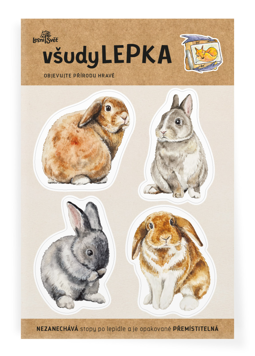Lepí na stěnu, nábytek i sklo VšudyLEPKA nabízí nekonečné možnosti pro hru a učení doma, ve škole, nebo třeba v družině. Připravíte s ní zábavné hry, vzdělávací aktivity, nebo využijete jako pomocníka při tvoření. Také je oblíbenou dekorací do dětského pokoje. Nezanechává stopy po lepidle. Lze ji opakovaně přemisťovat z místa na místo. Pevná a odolná. Šetrná ke všem povrchům. VšudyLEPKY jsou také oblíbeným pomocníkem pro třídění a rozlišování ve školách, školkách, nebo doma mezi sourozenci. Obrázkem snadno označíte, komu patří skříňka, šuplík, nebo postýlka. A případně to také snadno změníte. VšudyLEPKA z Lesního světa Vzor všudyLEPKY: králík Balení obsahuje arch s všudylepkami, rozměr archu: 24 × 16 cm Zabaleno v sáčku. Rozměr všudyLEPKY je cca 7,5 x 6 cm. VšudyLEPKY vyrábíme v Hradci Králové. Autorem kreseb jsou čeští ilustrátoři, obrázky jsou chráněny autorskými právy. Všechny výrobky jsou vyrobeny s ohledem na životní prostředí. Tereza Dolenská, grafička a ilustrátorka Mám radost, že mohu spojit svou lásku k malbě a přírodě s tvorbou smysluplných edukačních prvků pro děti. Více o Tereze Detail Detail Detail 10 kreativních tipů na práci s všudyLEPKOU Nevíte, co doma s dětmi? VšudyLEPKY vám otevírají možnost ke spoustě her a aktivit. Připravili jsme pro vás několik tipů. Ať už máte v plánu tvořit společně s dětmi, nebo je nechat pracovat samostatně. To mě zajímá