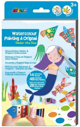 <p>Origami a malování akvarelovými barvami. Obsahuje: 14 omalovánek, 48 barevných palet, štětec. Věk: 3+ VAROVÁNÍ! Nebezpečí udušení – malé detaily. Nevhodné pro děti do tří let.</p>
