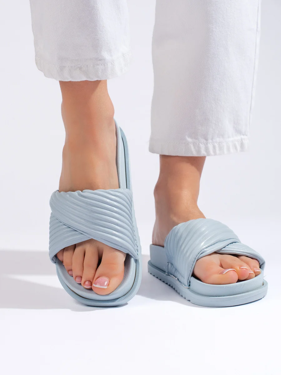 Výborné modré dámské nazouváky na plochém podpatku 37