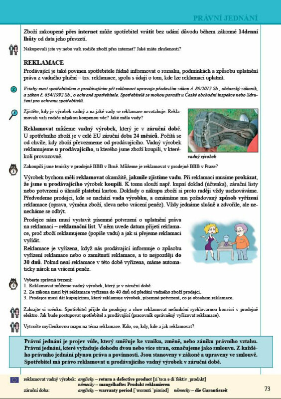 8-90 Aktualizované vydání obsahuje nově zpracované kapitoly o právním a protiprávním jednání – objasňují význam právní úpravy důležitých vztahů(např. vlastnictví, pracovní poměr) a obsahují příklady smluv, se kterými se můžeme setkat nejčastěji (kupní smlouva, smlouva o nájmu, smlouva o dílo, smlouva o přepravě), vysvětlují práva spotřebitele včetně reklamace, příčiny a důsledky korupce či protiprávnost porušování pravidel silničního provozu. V oddílu III. Člověk, láska a manželství jsou kapitoly nově řazeny tak, aby byl více zdůrazněn společenský rozměr sexuálních vztahů, manželství a rodiny. Nové učebnice pro vzdělávací obor Výchova k občanství jsou koncipovány v souladu s RVP ZV. V úvodu jednotlivých kapitol opět naleznete motivační texty, které mají v žácích vzbudit zájem o příslušné téma. Kromě samotného výkladového textu učebnice obsahují i celou řadu problémových úkolů, které rozvíjejí myšlenkové operace žáků. V rámci skupinových úkolů se knihy zaměřují na rozvoj vzájemné kooperace a komunikačních dovedností. Navíc jsou zde zařazeny mezipředmětové vazby formou odkazů na korespondující učivo v ostatních učebnicích z řady, průřezová témata, skupinové a projektové úkoly, pojmy v angličtině a němčině, opakovací a tvořivé úkoly, zajímavosti, práci s internetem, ukázky z krásné literatury. Tyto učebnice jsou zpracovány také interaktivní formou. Struktura a obsahová náplň jednotlivých kapitol učebnice Výchova k občanství 8 rozvíjí a uvádí do dalších souvislostí učivo předchozích dvou publikací. Kromě toho jsou zde i kapitoly obsahově nové, na které cyklicky navážeme v 9. ročníku – týká se to zejména těchto témat: lidské schopnosti a uplatnění ve společnosti, stát a právní řád.