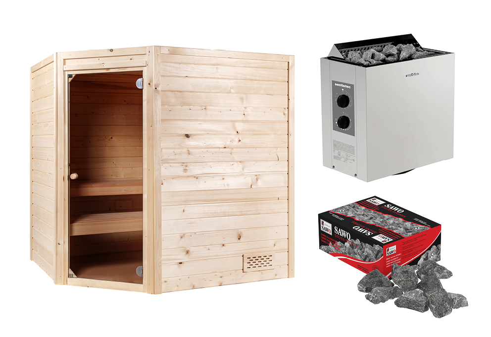 Domácí finská sauna PALAPELI pro 3-4 osoby, rohová