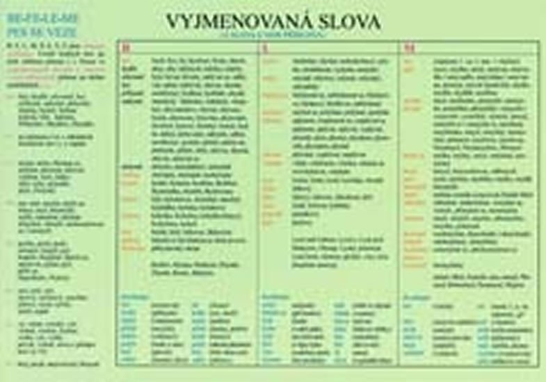 Vyjmenovaná slova a slova s nimi příbuzná - Tabulka A4 (B,L,M,P,S,V,Z)