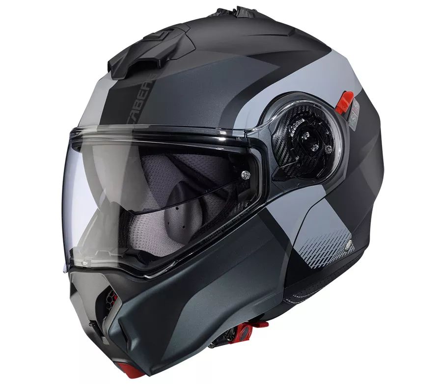 DUKE EVO je evolucí ikonické vyklápěcí helmy Caberg DUKE, která byla uvedena na trh v roce 2012 a která zaznamenala mezi motocyklisty po celém světě velký úspěch. Především pro svou vynikající službu za rozumné peníze, kompaktní rozměry a hmotnost, vysoké bezpečnostní standardy a 5 hvězdiček podle testu SHARP.\r \r Zcela nová helma DUKE EVO splňuje vysoké bezpečnostní nároky stanovené nejnovějším nařízením EU ECE 22.06. Z nepřeberného množství skvělých vlastností uvedeme namátkou: Kompaktní rozměry skořepiny a její váha kolem 1600g, komfortní výstelka vyrobená z prodyšných hypoalergenních tkanin, nový systém vyklápění bradové části, vylepšená ventilace, nový systém mechanismu plexi.\r \r DUKE EVO se vyznačuje agresivním a podmanivým designem, který je ideální pro touringové jezdce, jezdce na naháčích a maxi skútrech.\r Po splnění požadavků stanovených zkušebním nařízením EU ECE 22.06 pro celoobličejové (P) i otevřené (J) helmy DUKE EVO získal dvojitou homologaci P/J. Umožňuje tedy jízdu i s otevřenou bradovou částí.\r \r Helma je vybavena systémem Double Visor Tech, který vám díky integrované sluneční cloně umožňuje jezdit bezpečně i za ostřejšího slunečního svitu. Sluneční clona je ošetřena technologií proti poškrábání, čiré plexi je vybaveno protimlžící folií Pinlock Max Vision.\r \r Dále helma může být vybavena bezdrátovým komunikačním systémem Caberg PRO Speak EVO, nebo jiným na trhu dostupným komunikátrem. PRO Speak EVO umožňuje komunikovat nejen s vaším vlastním mobilním telefonem a vaším spolujezdcem, ale také se připojit k systému GPS, poslouchat hudbu přes mobil nebo MP3 přehrávač. PRO Speak EVO je vybaven Bluetooth A2DP, který umožňuje poslech stereo ve vysoké kvalitě. Helma je homologovaná i pro použití komunikátoru.\r DUKE Evo se vyrábí v Itálii.\r \r - skořepina tvrzený plast (ABS)\r - čiré plexi + sluneční clona\r - systém rychlého otevření plexi\r - plexi s úpravou proti poškrábání\r - Pinlock 70 součástí balení\r - mikrometrická přezka\r - systém vnitřní cirkulace vzduchu - ventilace na bradě a vrchní části helmy umožňuje proudění čerstvého vzduchu přes vzduchové kanálky uvnitř helmy a vytlačuje teplý vzduch z helmy ven přes zadní otvory ventilace\r - odnímatelná a pratelná hypoalergenní výstelka\r - plexi je vybaveno gumičkou, která zajišťuje ochranu před protečením vody\r - odnímatelná zarážka proti větru\r - připraveno pro Caberg PRO Speak EVO komunikátor\r - připraveno pro použití interkomu\r - hmotnost 1600 gr. +/- 50 gr.\r - P/J duální homologace pro otevřenou i integrální helmu garantující bezpečnou jízdu se zajištěnou otevřenou bradovou částí - díky P/J páčce na levé straně helmy lze pozici otevřené bradové části zamknout (pozice \"J\") a tím blokovat možnost jejího samovolného zavření za jízdy\r - homologováno dle ECE 22.06\r - vyrobeno v Itálii