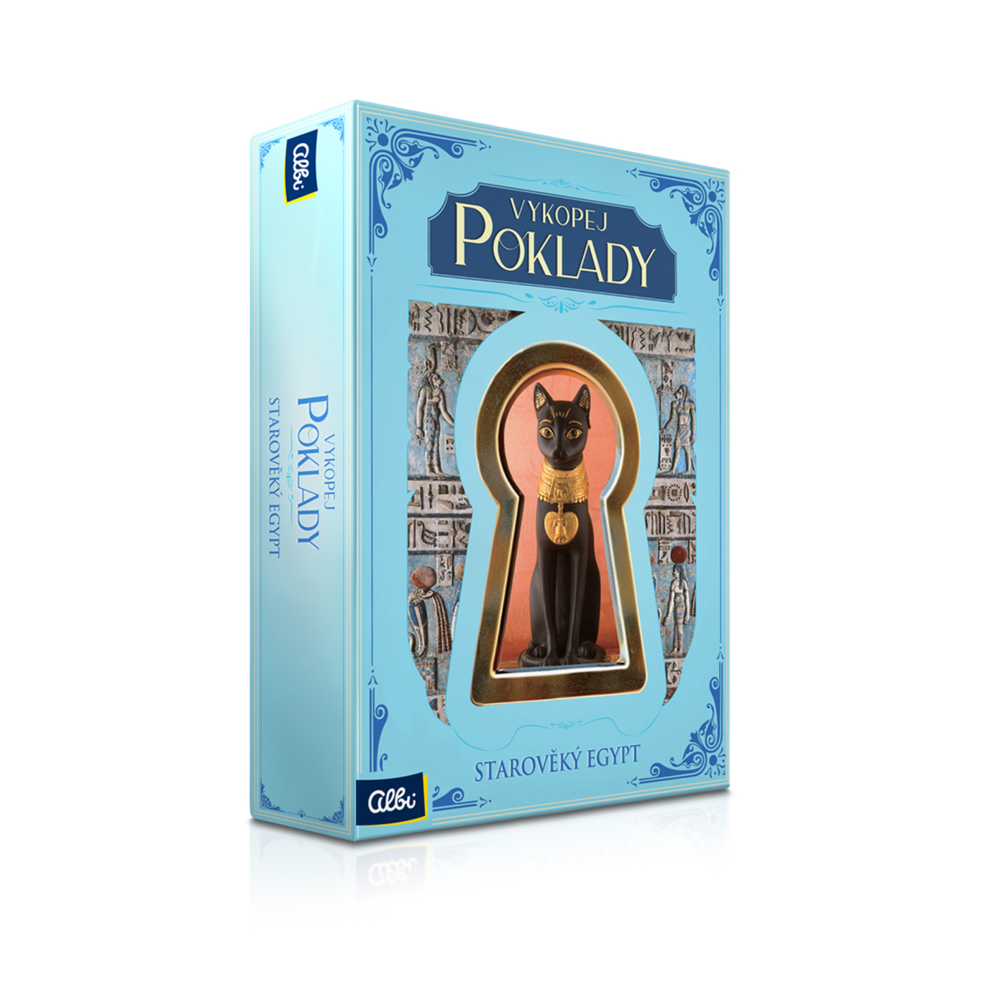 Sada umožňuje dětem vyprostit ze sádrového bloku unikátní artefakty a nahlédnout pod pokličku starověkého Egypta. Přiložená příručka následně zprostředkovává podrobný vhled do historických souvislostí. Sada obsahuje: kutací kvádr, špachtli, štěteček, kladívko, lupu, příručku v českém a slovenském jazyce.