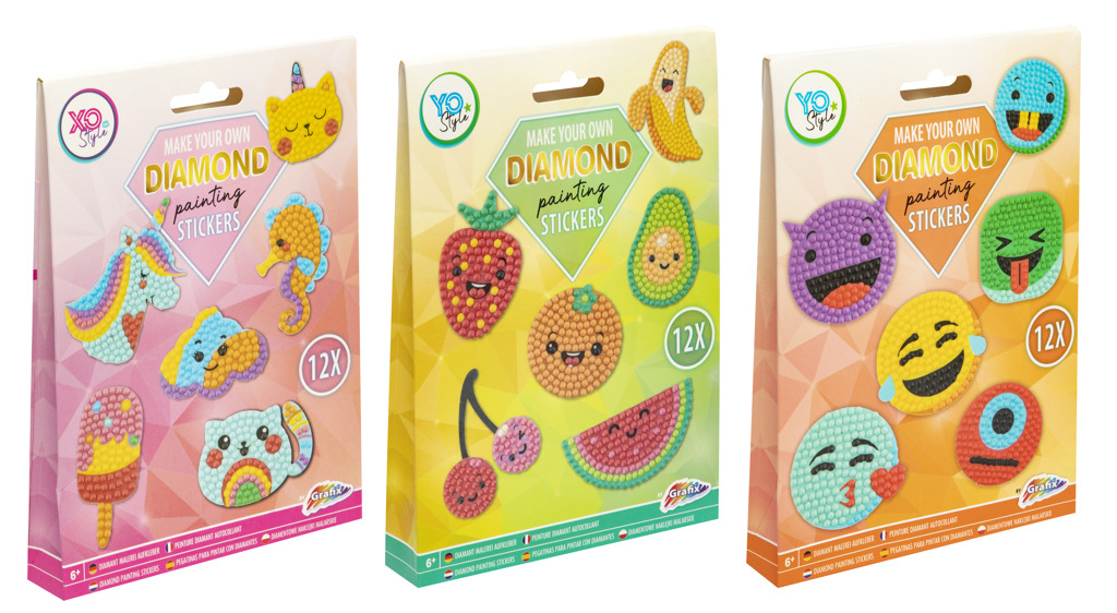 Výroba samolepek „Diamond“ – udělej si svoje vlastní samolepky. Balení obsahuje samolepky – 12 ks, kamínky a aplikátor. Ve třech různých provedeních.