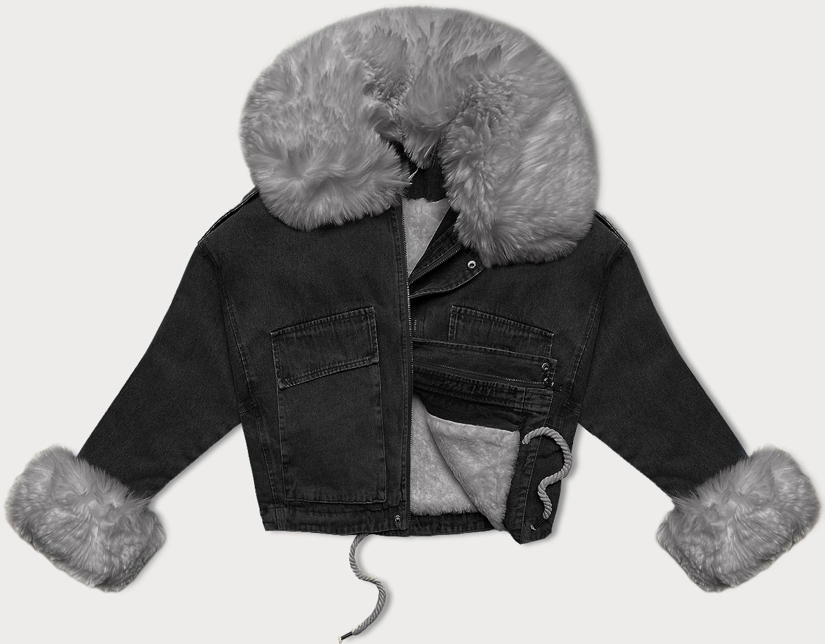 Věnujte prosím pozornost při výběru velikosti dle velikostní tabulky uvedené níže. Velikosti neodpovídají běžně nošené konfekci. Džínová bunda s límcem Bunda má volný střih, uvnitř má kožešinovou podšívku (také v rukávech), má dvě kapsy a zapíná se zipem a panelem s patentkami. Na límci a na rukávech jsou kožešiny, které je možné odepnout. Kovové prvky mají stříbrnou barvu. Na spodním okraji modelu jsou stahující šňůrky. Model má délku do pasu. Složení: vrchní vrstva - 65 % bavlna, 35 % polyester; podšívka - 100 % polyester.