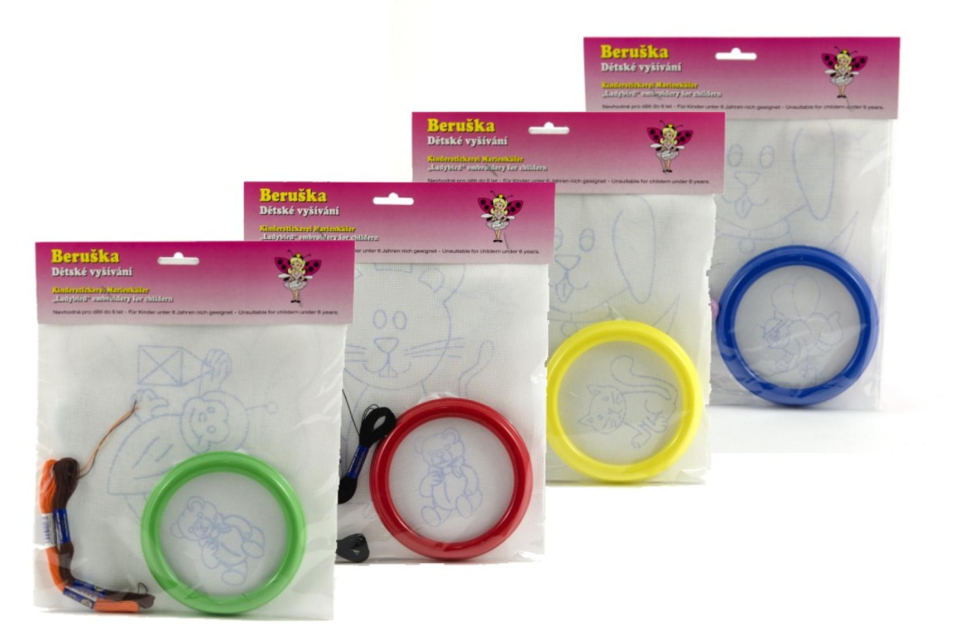 Kreativní set na vyšívání pro všechny šikovné holčičky a malé švadlenky. Sada obsahuje plastový rámeček s napnutým plátýnkem s předtištěným obrázkem, dva další obrázky na vyšití a čtyři bavlnky ve čtyřech různých barvách v sáčku. Sada v několika barevných kombinacích bavlnek a rámu, a v několika motivech obrázku.