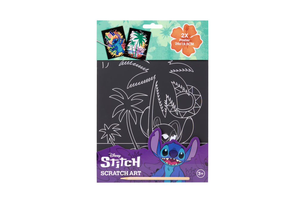 Kreativní zábava s oblíbenou postavičkou Stitch! Tato sada obsahuje 2 vyškrabávací obrázky, na kterých děti pomocí přiloženého dřívka odhalují barevné motivy ukryté pod černou vrstvou. Ideální aktivita pro rozvoj jemné motoriky, trpělivosti a fantazie. Skvělý dárek pro malé výtvarníky i fanoušky filmu Lilo & Stitch. Velikost obrázku 29×15 cm.