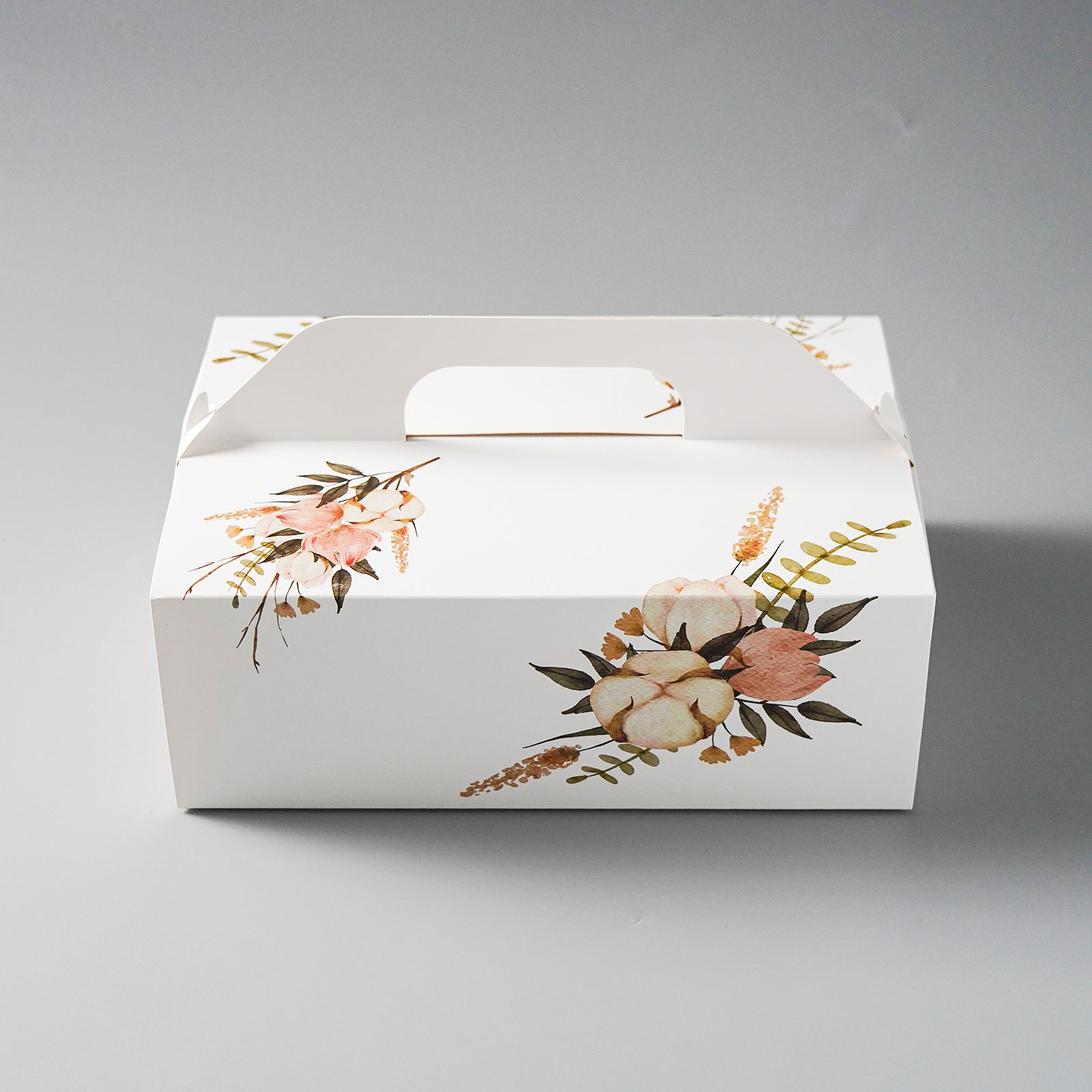 Papírové krabičky na zákusky nebo svatební výslužku v bílé barvě s potiskem by rozhodně na vaší oslavě neměly chybět. Do krabiček můžete po oslavě vložit sladkou výslužku z oslavy nebo dárek jako poděkování za účast. Rozměr: 26x18x9,5cm Pro velkoobchod cena za 10ks v balení.