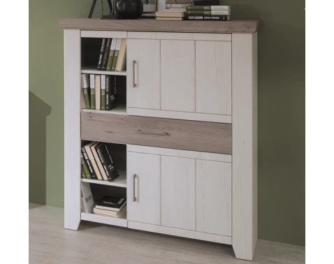 Vysoká komoda Cruz 100 cm, bělená pinie/šedý dub