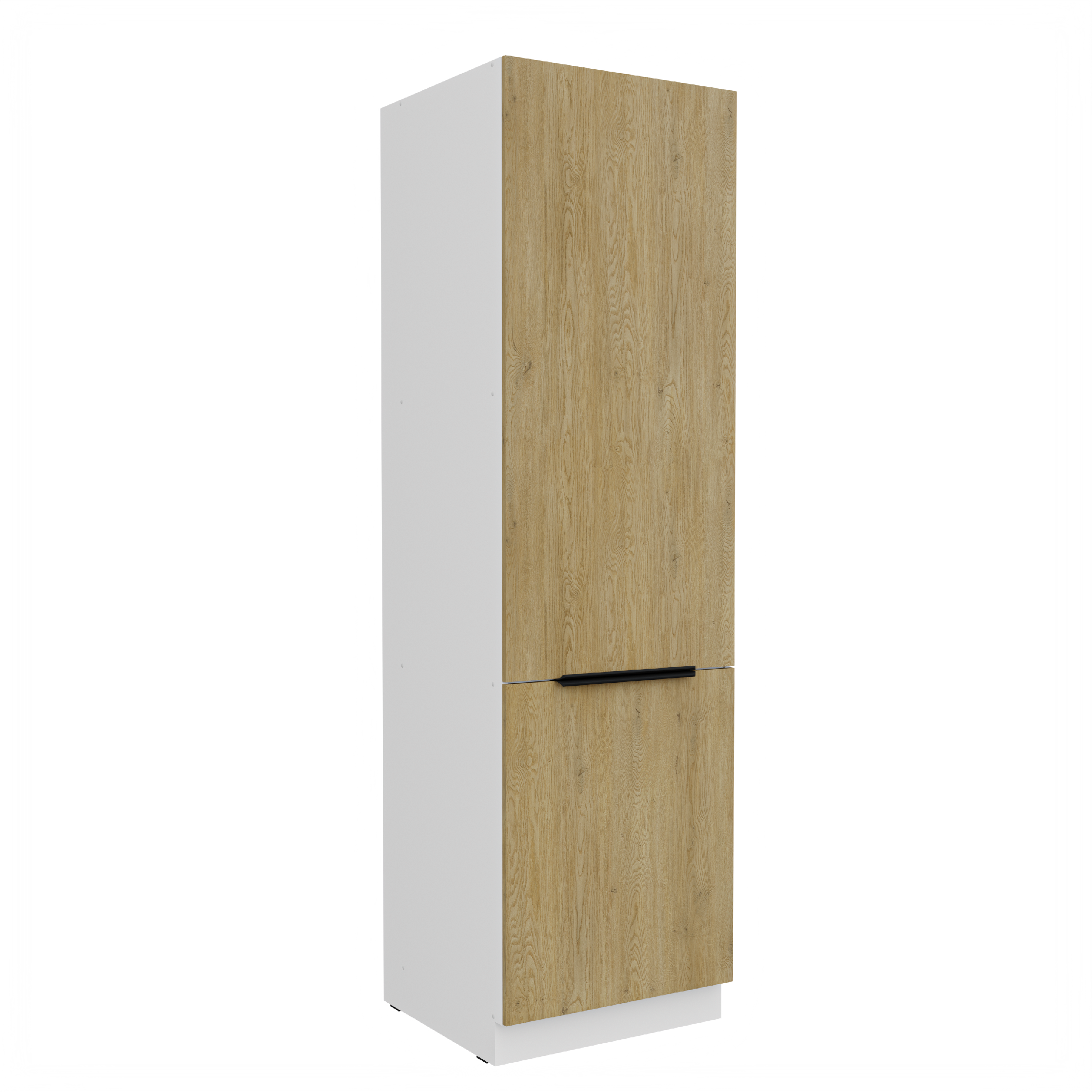 Vysoká potravinová skříňka Cremona 60 DK-210 2F Vlastnosti: Materiál Laminovaná dřevotřísková deska o síle 16 mm Zakončené hrany ABS hrana o síle 1 mm Úchyt Matný kovový černý úchyt Sokl Součástí balení Vnitřní barva Vnitřek skříně je bílý Vnitřní uspořádání Čtyři police Panty / Pojezdy Panty s tlumeným zavíráním Určení Potravinová skříňka • Barevné kombinace Černá a Dub Cremona Korpus a dvířka Bílá a Dub Cremona Korpus a dvířka • Rozměry:Šířka:60 cmVýška:210 cmHloubka:57 cmPočet balení:3 krabice • Odkazy na příslušenství ke kuchyňským linkámKompletní nabídka skříněk ke kuchyňské lince CremonaPracovní deskyPříslušenství ke kuchyním •