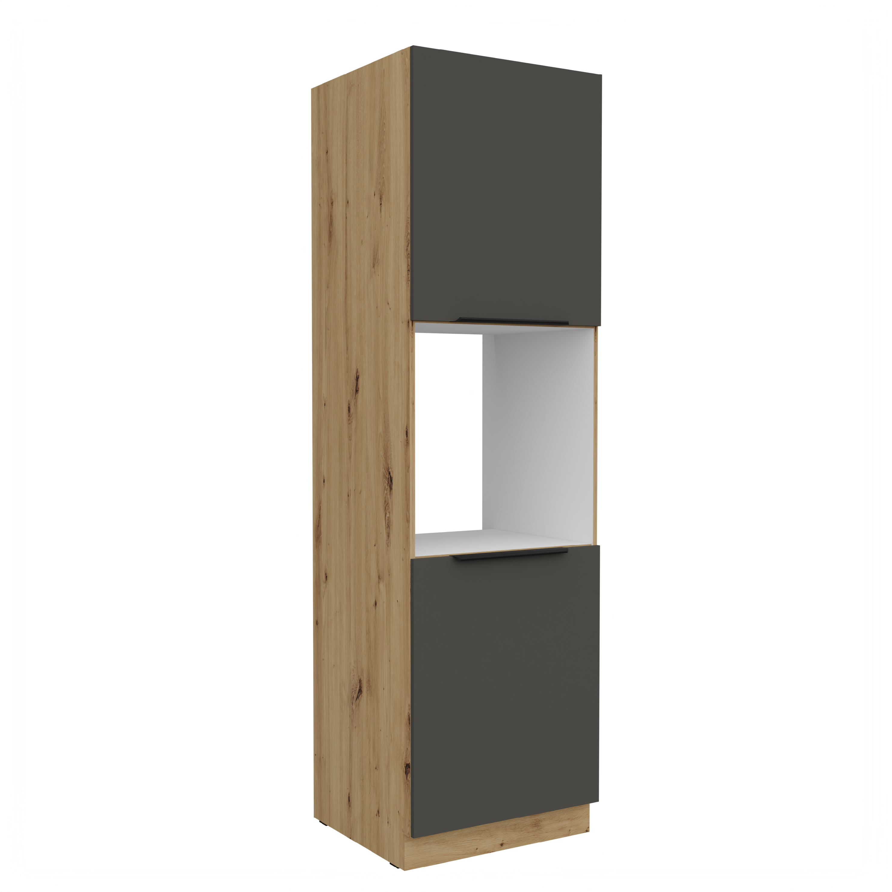 Vysoká skříňka pro vestavnou troubu Aria 60 DP-210 2F Vlastnosti: Materiál Laminovaná dřevotřísková deska o síle 16 mm Zakončené hrany ABS hrana o síle 1 mm Anti Finger Print Jedná se o speciální povrchovou úpravu, kdy na povrchu dvířek / čel zásuvek nezůstávají otisky prstů. Úchyt Matný kovový černý úchyt Sokl Součástí balení Vnitřní barva Vnitřek skříně je bílý Vnitřní uspořádání Dvě police Panty / Pojezdy Panty s tlumeným zavíráním Určení Pro vestavnou troubu • Barevné kombinace K dispozici je celkem 15 barevný kombinací - 3 barevné varianty korpusu a 5 barevných variant dvířek. Dub artisan korpus Bílá matná korpus Černá matná korpus BL - Black AFM dvířka / čela zásuvek SA - Aquamarine AFM dvířka / čela zásuvek TA - Sandgrau AFM dvířka / čela zásuvek GR - Graphite AFM dvířka / čela zásuvek WH - Crystal white AFM dvířka / čela zásuvek • Rozměry:Šířka:60 cmVýška:210 cmHloubka:57 cmPočet balení:3 krabice • Odkazy na příslušenství ke kuchyňským linkámKompletní nabídka skříněk ke kuchyňské lince AriaPracovní deskyPříslušenství ke kuchyním •