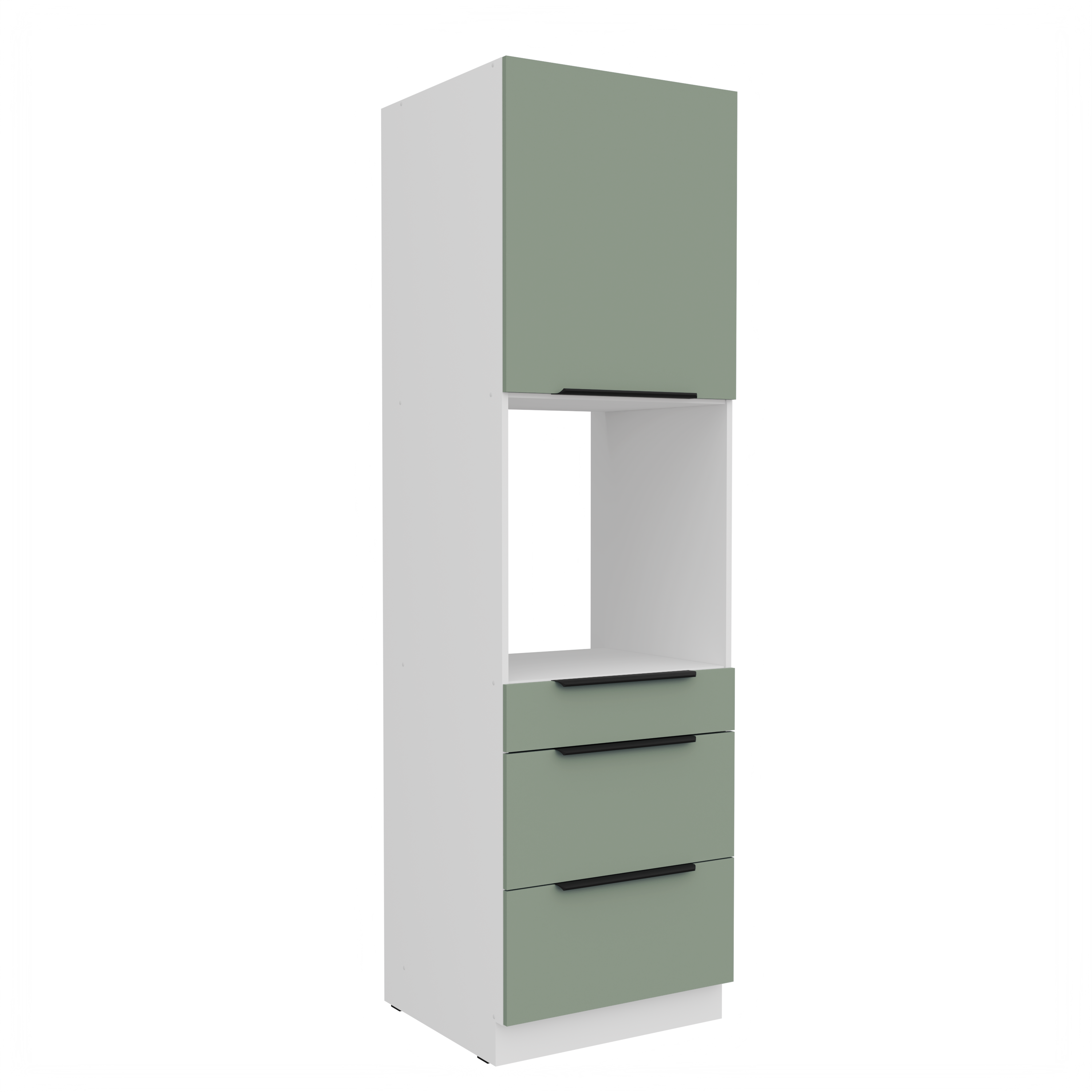 Vysoká skříňka pro vestavnou troubu Aria 60 DPS-210 3S 1F - Premium Box Vlastnosti: Materiál Laminovaná dřevotřísková deska o síle 16 mm Zakončené hrany ABS hrana o síle 1 mm Anti Finger Print Jedná se o speciální povrchovou úpravu, kdy na povrchu dvířek / čel zásuvek nezůstávají otisky prstů. Úchyt Matný kovový černý úchyt Sokl Součástí balení Vnitřní barva Vnitřek skříně je bílý Vnitřní uspořádání Jedna police a tři zásuvky Panty / Pojezdy Panty a pojezdy s tlumeným zavíráním Určení Pro vestavnou troubu • Barevné kombinace K dispozici je celkem 15 barevný kombinací - 3 barevné varianty korpusu a 5 barevných variant dvířek. Dub artisan korpus Bílá matná korpus Černá matná korpus BL - Black AFM dvířka / čela zásuvek SA - Aquamarine AFM dvířka / čela zásuvek TA - Sandgrau AFM dvířka / čela zásuvek GR - Graphite AFM dvířka / čela zásuvek WH - Crystal white AFM dvířka / čela zásuvek • Rozměry:Šířka:60 cmVýška:210 cmHloubka:57 cmPočet balení:3 krabice • Odkazy na příslušenství ke kuchyňským linkámKompletní nabídka skříněk ke kuchyňské lince AriaPracovní deskyPříslušenství ke kuchyním •