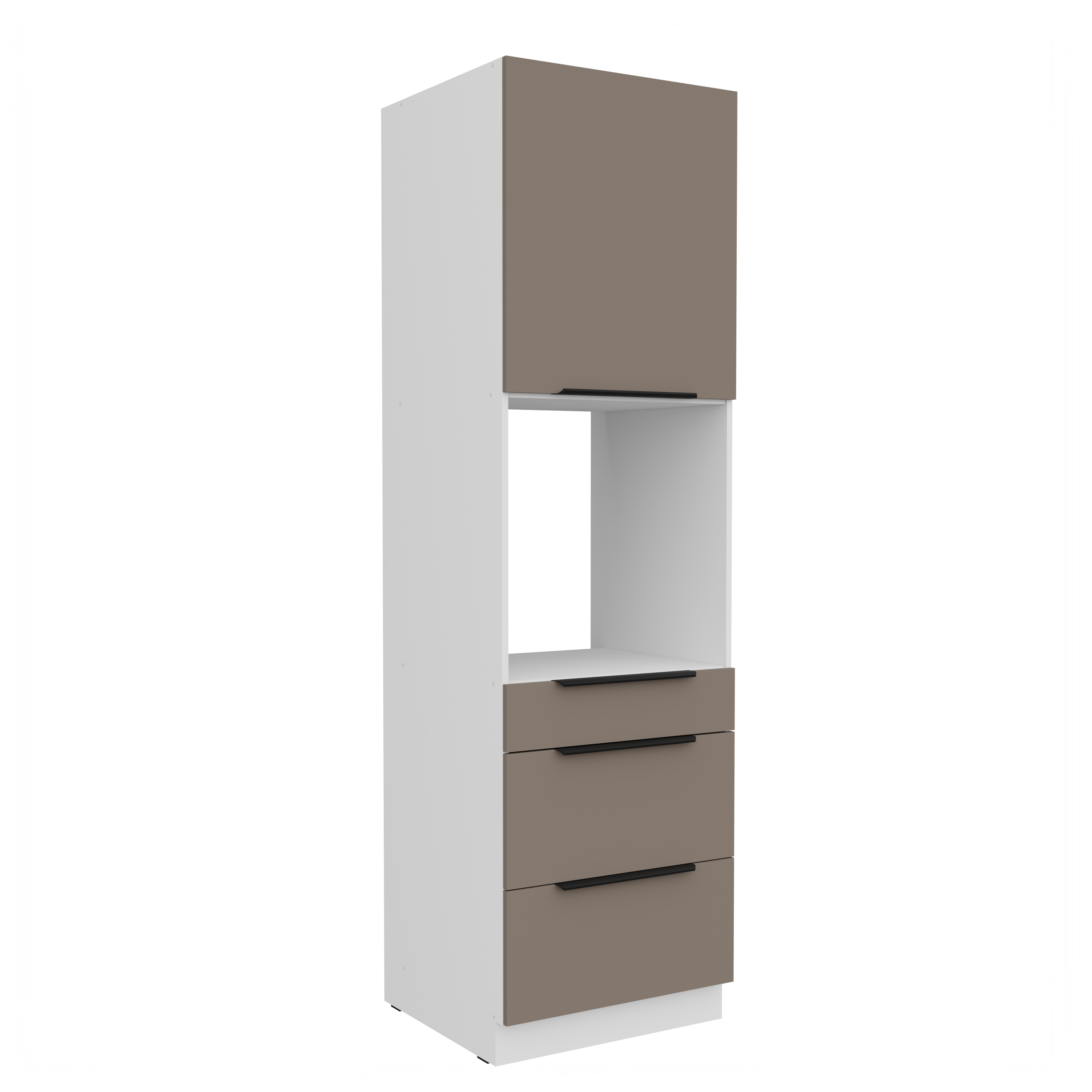 Vysoká skříňka pro vestavnou troubu Aria 60 DPS-210 3S 1F - Premium Box Vlastnosti: Materiál Laminovaná dřevotřísková deska o síle 16 mm Zakončené hrany ABS hrana o síle 1 mm Anti Finger Print Jedná se o speciální povrchovou úpravu, kdy na povrchu dvířek / čel zásuvek nezůstávají otisky prstů. Úchyt Matný kovový černý úchyt Sokl Součástí balení Vnitřní barva Vnitřek skříně je bílý Vnitřní uspořádání Jedna police a tři zásuvky Panty / Pojezdy Panty a pojezdy s tlumeným zavíráním Určení Pro vestavnou troubu • Barevné kombinace K dispozici je celkem 15 barevný kombinací - 3 barevné varianty korpusu a 5 barevných variant dvířek. Dub artisan korpus Bílá matná korpus Černá matná korpus BL - Black AFM dvířka / čela zásuvek SA - Aquamarine AFM dvířka / čela zásuvek TA - Sandgrau AFM dvířka / čela zásuvek GR - Graphite AFM dvířka / čela zásuvek WH - Crystal white AFM dvířka / čela zásuvek • Rozměry:Šířka:60 cmVýška:210 cmHloubka:57 cmPočet balení:3 krabice • Odkazy na příslušenství ke kuchyňským linkámKompletní nabídka skříněk ke kuchyňské lince AriaPracovní deskyPříslušenství ke kuchyním •