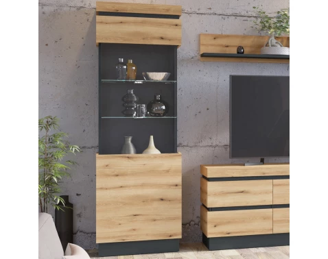 FRONTI Komoda ASTON 1D3S PRAVÁ - dub + béžová