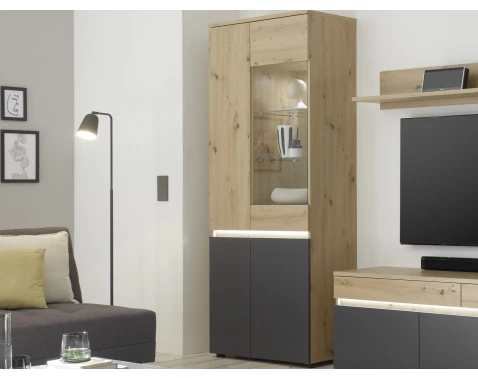 Vysoká vitrína Lille, dub artisan/antracit, s osvětlením