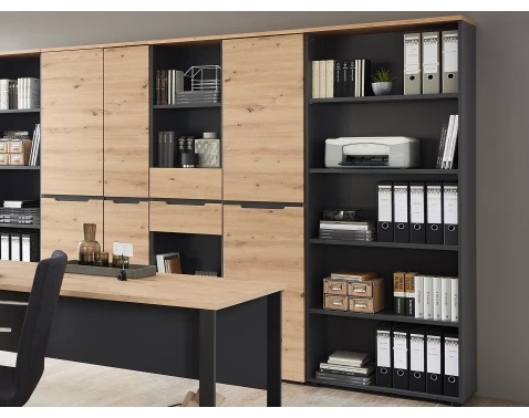 Komoda P15 140cm Barva korpusu: Dub - canyon, Lišta: Dub - canyon, Barva dvířek: Šedá