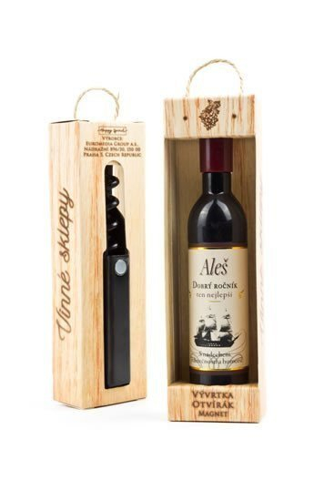 Vývrtka ve tvaru vinné lahve s originálním potiskem viněty je vhodným dárkem pro všechny milovníky vína. Užijte si svoji chvilku v dobré společnosti!Vývrtka s magnetem pro uchycení na lednici je balena v dárkové krabičce. Rozměr 12,5 x 3,5 x 2,5 cm.