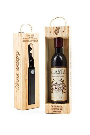 Vývrtka ve tvaru vinné lahve s originálním potiskem viněty je vhodným dárkem pro všechny milovníky vína. Užijte si svoji chvilku v dobré společnosti!Vývrtka s magnetem pro uchycení na lednici je balena v dárkové krabičce. Rozměr 12,5 x 3,5 x 2,5 cm.