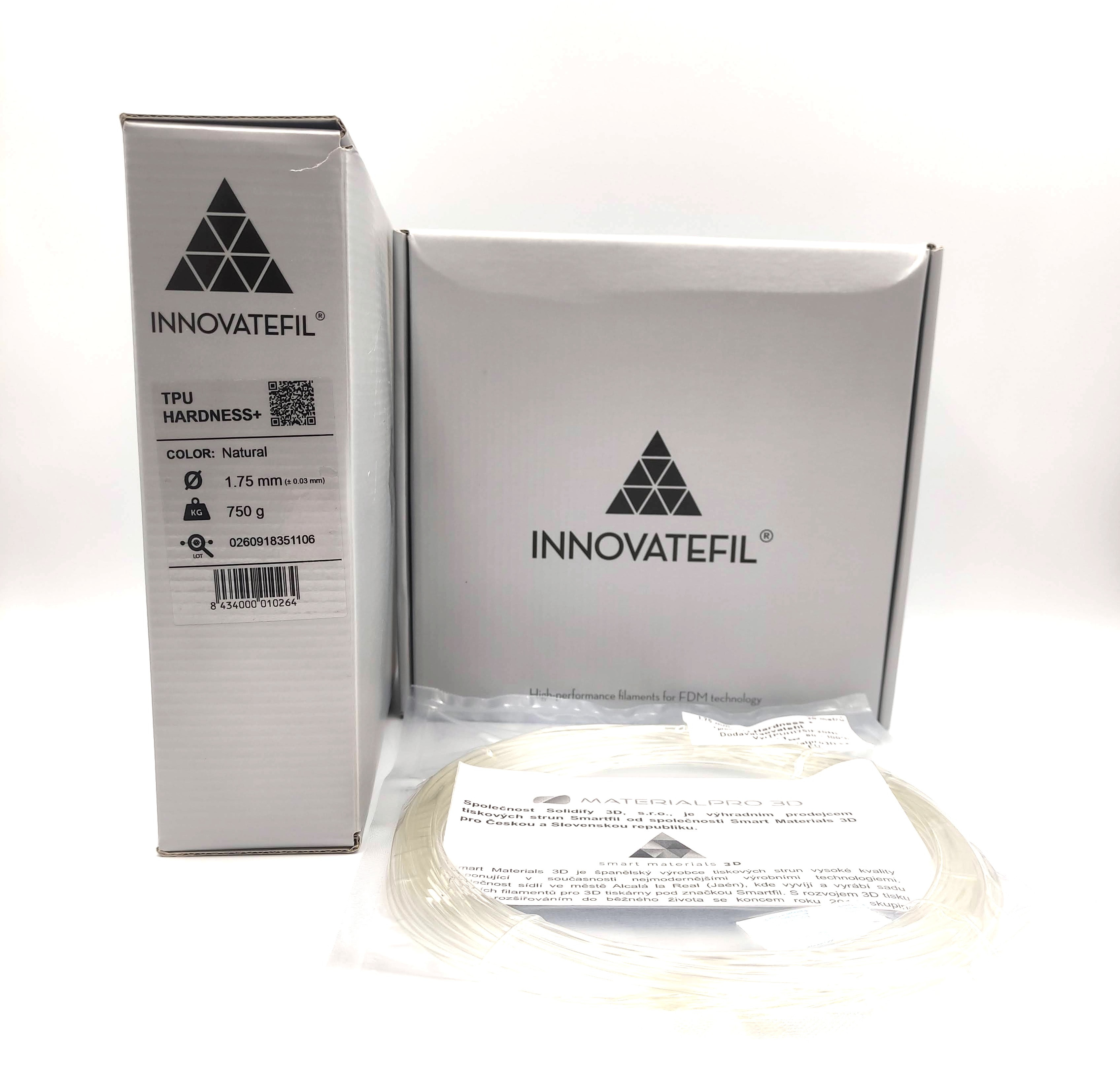 SMARTFIL TPU HARDNESS+: Tento speciální termoplastický polyuretan v sobě snoubí tvrdost, elasticitu i mechanickou odolnost. Díky těmto přednostem pokrývá požadavky téměř všech modelů, které potřebujete vyrobit. Jeho hlavní přednosti jsou:• Vysoká odolnost vůči opotřebení a oděru.• Snižování nárazů a přenosu vibrací.• Vysoká odolnost proti tukům, olejům, kyslíku a ozonu.• Velká odolnost proti hydrolýze a UV stabilizaci.• Vysoká odolnost vůči mikroorganismům. Materiál je odolný vůči mrazu, bez křehnutí vydrží teploty až -60 °C. Při nižších teplotách než -60 °C už dochází k teplotnímu šoku. Průměr: 1,75 mm (±0,03) Pracovní teplota: 220 °C Teplota podložky: 80-100 °C Recyklovatelný. Může přijít do styku s potravinami. Ohnivzdorný.