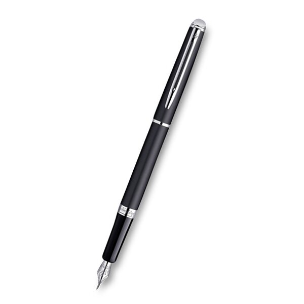 Plnící pero Waterman série Hémisphère. Černě lakované mosazné tělo a víčko. V kombinaci s doplňky pokovenými nikl-paládiem. Hrot z ušlechtilé nerezové oceli. Plnicí pero: nasazovací víčko hrot z nerezové oceli přizpůsobeno výhradně k používání inkoustových bombiček Waterman nebo konvertoru (konvertor není součástí balení) bombičky mohou být jak standardní, tak krátké Hémishere představuje jasný příklad čistého, jednoduchého designu, v němž se skrývá nekonečná hloubka dokonalosti. Štíhlá linie, jejíž dynamičnost zdůrazňuje dvouramenný klip a sešikmený vrchol, je umocněna hlubokým lakem dokonale vyhlazeného pláště i pláštěm z kartáčované oceli. Dodáváno s hrotem M a bombičkou, v elegantním dárkovém balení. Jak se liší hroty M a F? F - Slabý hrot (Fine) - Vhodný pro běžné psaní a poznámky. Mírný tlak vytváří jemnou linku. Velmi oblíbený, vhodný pro uživatele se standardním rukopisem. M - Střední hrot (Medium) - Průměrný tlak a šíře linky. Vhodný pro uživatele, kteří mají rádi maličko silnější linku. K plnicímu peru můžete jako náplň využít konvertor Waterman s lahvičkovým inkoustem, případně standardní nebo krátké inkoustové bombičky Waterman. V případě, že se zaregistrujete a přihlásíte (zaregistrovaní se jen přihlásí), dostanete na toto plnící pero slevu 10%. V případě zájmu o více kusů nás kontaktujte se žádostí o individuální nabídku. Zakupte produkt Waterman Hémisphère Black Lacquer CT - plnící pero - hrot M z kategorie Psací potřeby | Značkové psací potřeby | Waterman | Plnící pera od výrobce WATERMAN za cenu 3609 Kč.