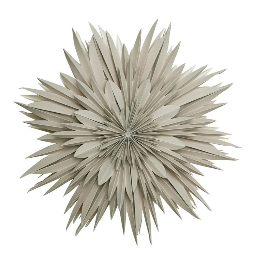 Watt & Veke Závěsná svítící hvězda Maja Greige 60 cm, šedá barva, papír. Závěsná lampa Maja od Watt & Veke v sobě spojuje moderní jednoduchost a přírodní eleganci. Její ručně skládané části papíru v jemném odstínu šedobéžové přináší do interiéru sofistikovaný, ale zároveň útulný prvek. Světlo, které skrz hvězdu prochází, vytváří měkkou a přívětivou atmosféru, ideální pro klidné večery nebo příjemné rodinné chvíle.