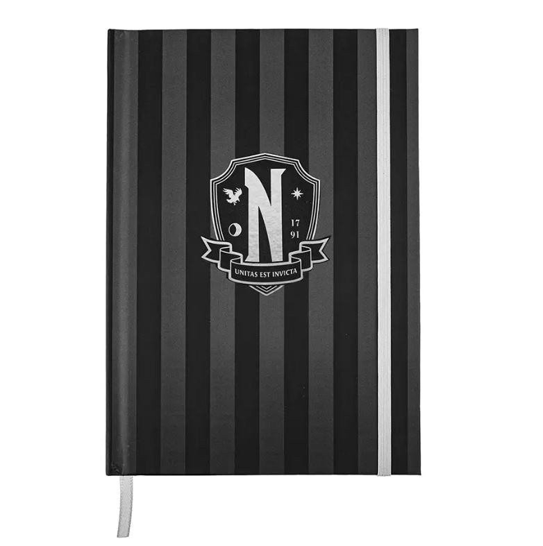 Zápisník v pevné vazbě s gumičkou s motivem ze světa Wednesday, oficiálně licencováno. Velikost A5, linkovaný.