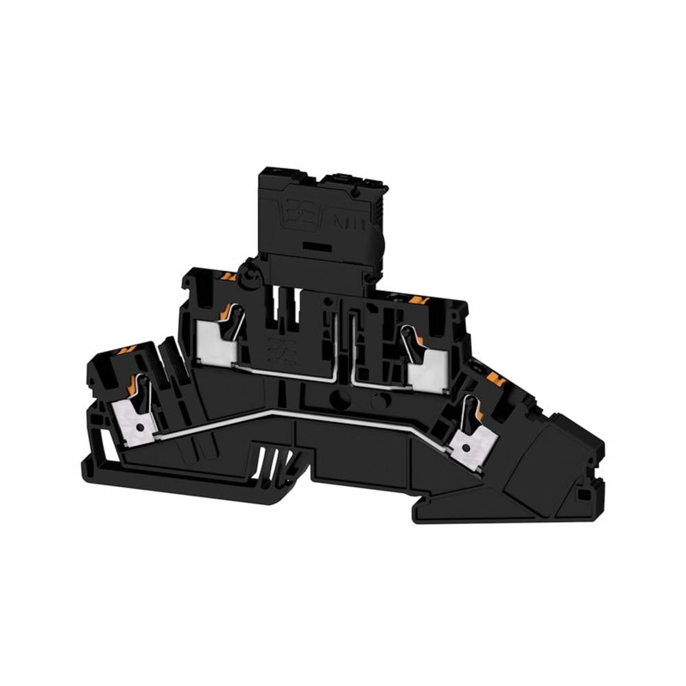 Řadová svorka pro připojení nebo spojení vodičů s trvale bezpečným kontaktem. Kalená ocel drží mechanické síly, cín potažená měď zajišťuje nejlepší vodivost. S vyjímatelným nosičem pro pojistku.