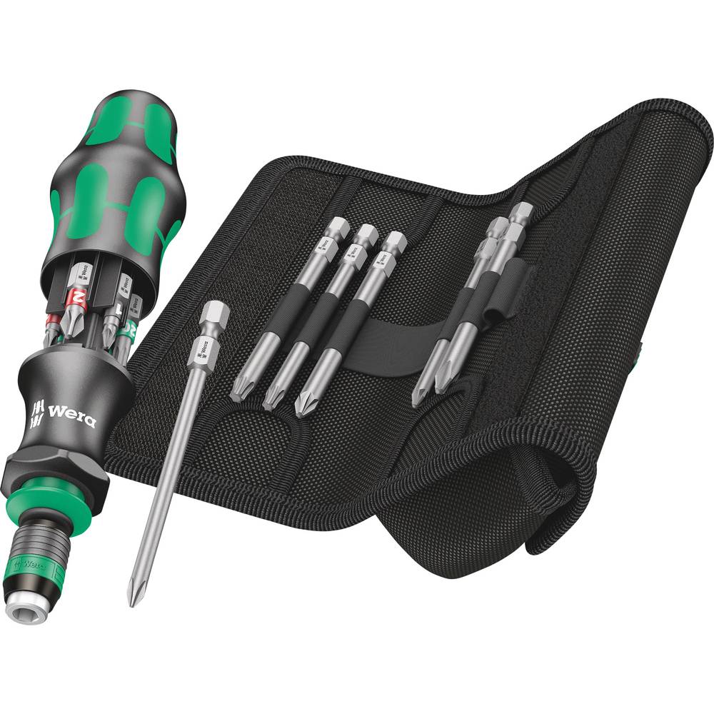 13dílná sada Kraftform Kompakt s 6x 25 mm dlouhému a 6x bity o délce 89 mm. Wera kompaktní nářadí umožňují současné použití obou druhy šroubování - ruční" nebo "robot". Rukojeť -výměnné čepele v kompa