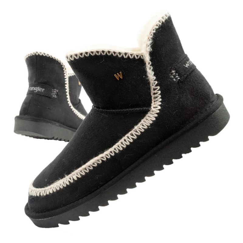 Wrangler Elsa zimní kotníkové boty zateplené pohodlné módní černéWrangler zimní botyKozačky Wrangler Elsa jsou dokonalou kombinací pohodlí a klasiky. Hodí se jak k džínám a kabátu, tak k šatům se silnými punčochami - ideální pro chladnější dny.Jemné logo Wrangler podtrhuje originalitu a charakter obuvi.Díky nazouvacímu provedení je jejich nazouvání rychlé a pohodlné.Odolná gumová a protiskluzová podrážka.Zimní boty značky Wrangler.Stylové a pohodlné boty Wrangler Elsa jsou ideální volbou pro podzimní a zimní sezónu, kombinují módní design s pohodlím při nošení, takže se skvěle hodí pro ležérní i elegantnější styling.