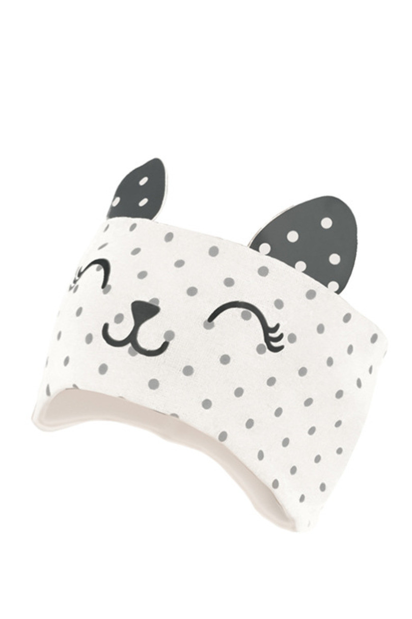 Dívčí čelenka z podkladu z jemné bavlny, s veselou aplikací. Tvarovaný model, dobře kryjící uši..