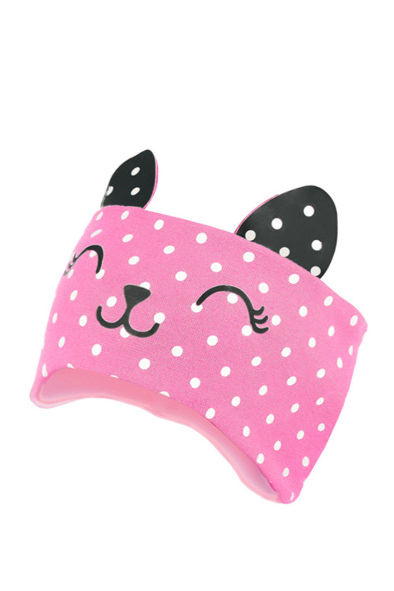 Dívčí čelenka z podkladu z jemné bavlny, s veselou aplikací. Tvarovaný model, dobře kryjící uši..