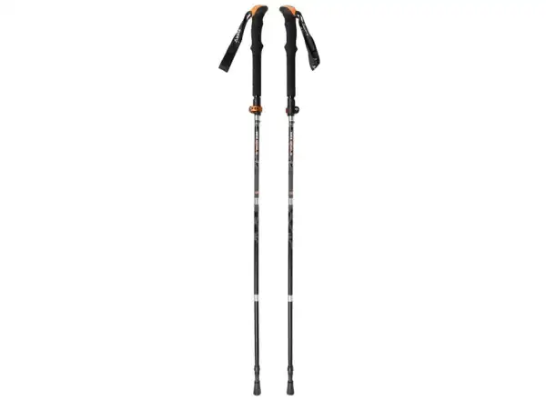 Díky skládacímu systému s lankem jsou hole rychle a pevně sestavené. Horní posuvný díl s upínákem SPEED LOCK slouží k nastavení požadované délky. Technické parametry Materiál: Hliník 7075 Rukojeť: EVA pěna Hmotnost: 520 g (pár) Délka: 110 - 135 cm Délka ve složeném stavu: 40 cm Počet dílů: 5 Hroty: ocel Prodloužená pěnová rukojeť a nastavitelné poutko z měkkého popruhu je příjemné na úchop a nikde nedře do ruky. Hole jsou dodávány v přepravním obalu spolu se dvěma talířky (velký a malý) a kryty na hroty.